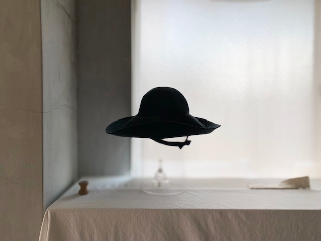 sugriの別珍キャプリン。 ブリム幅が約15cmたっぷりなので、ぐっと下げて使ったり、前を持ち上げてかぶったり、後だけ持ち上げてかぶったり、表情がかわります。 あごの部分は丸いボタンがとても可愛いです。 そっと帽子の内側に、刺繍が施されています。 s i z e : 帽子を平置きの状態で直径約41cmほど。 頭周りは約58cm。 m a t e r I a l : c o t t o n 1 0 0 %