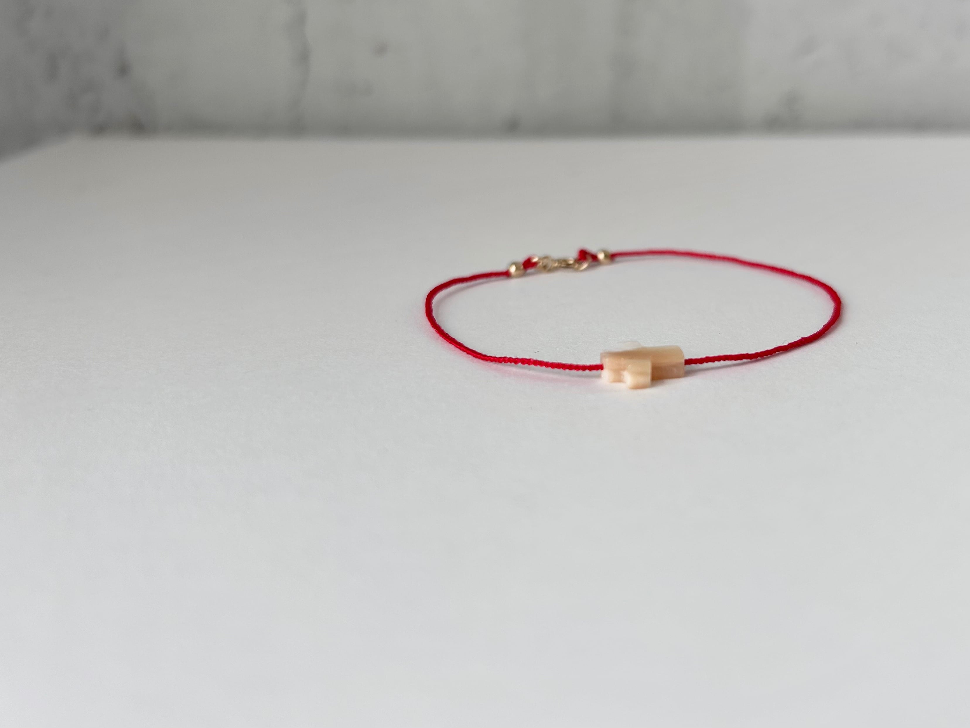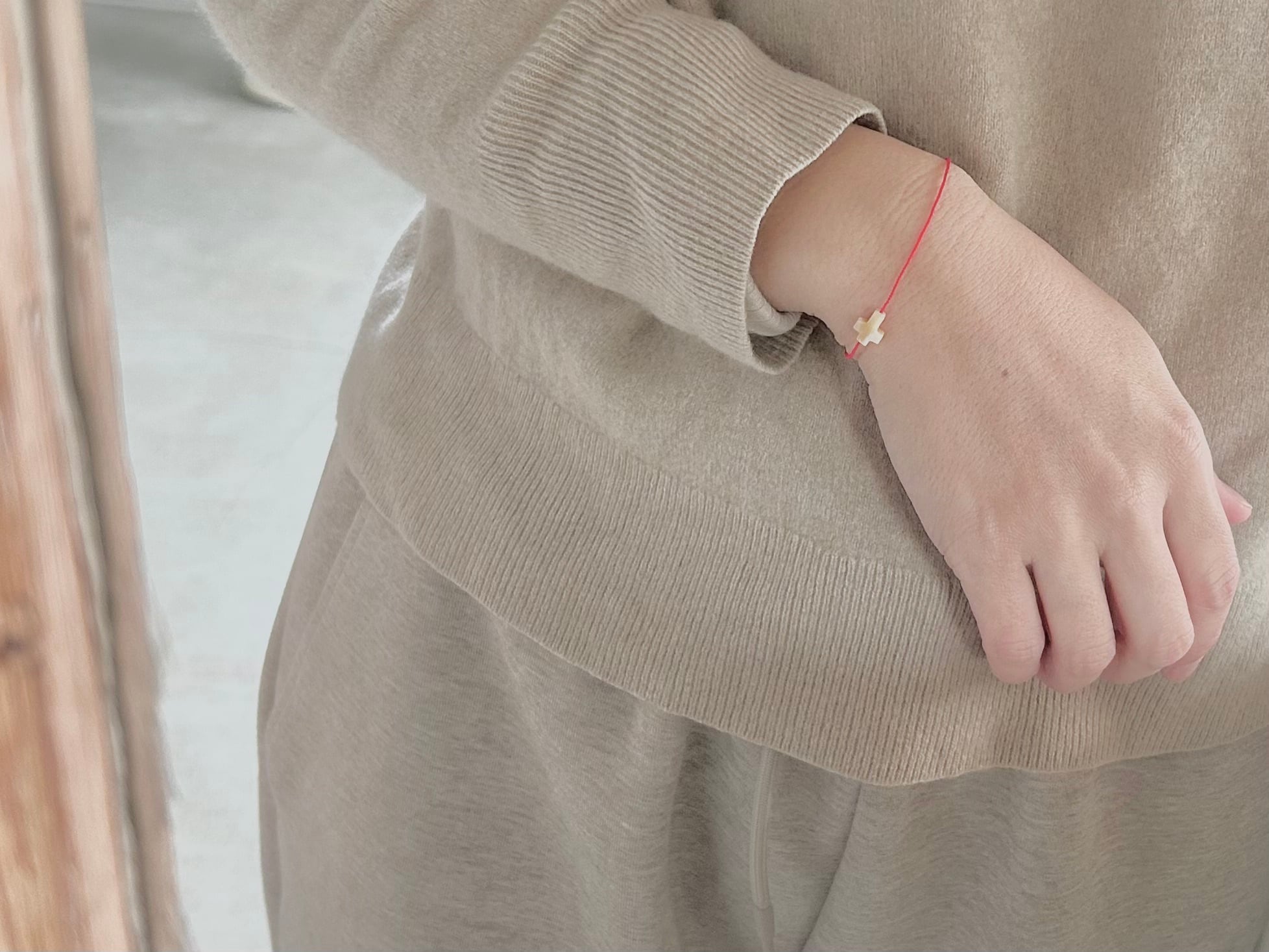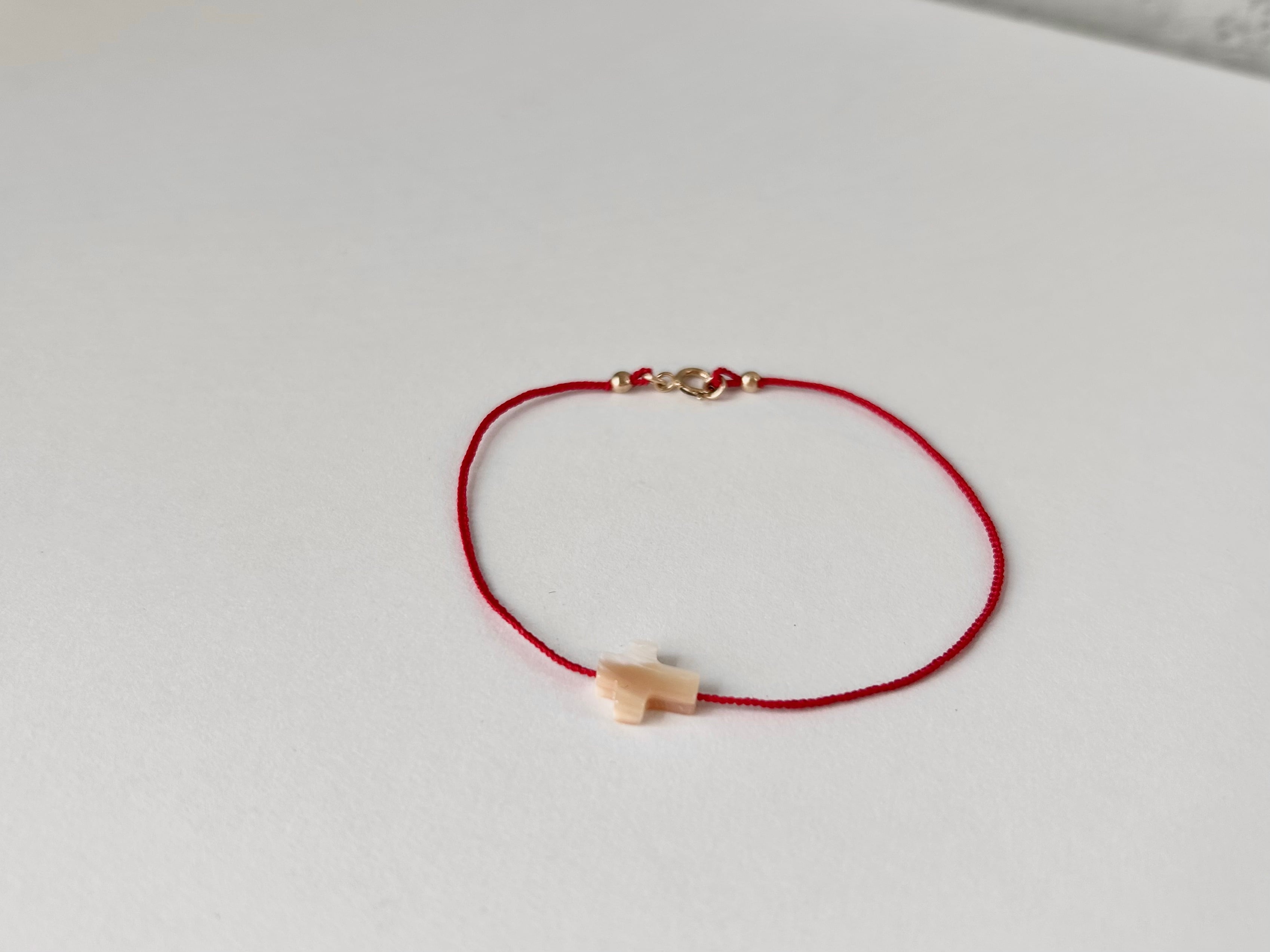 KAMIORI KAORI . クロスのモチーフのマザーオブパールを通したブレスレット。