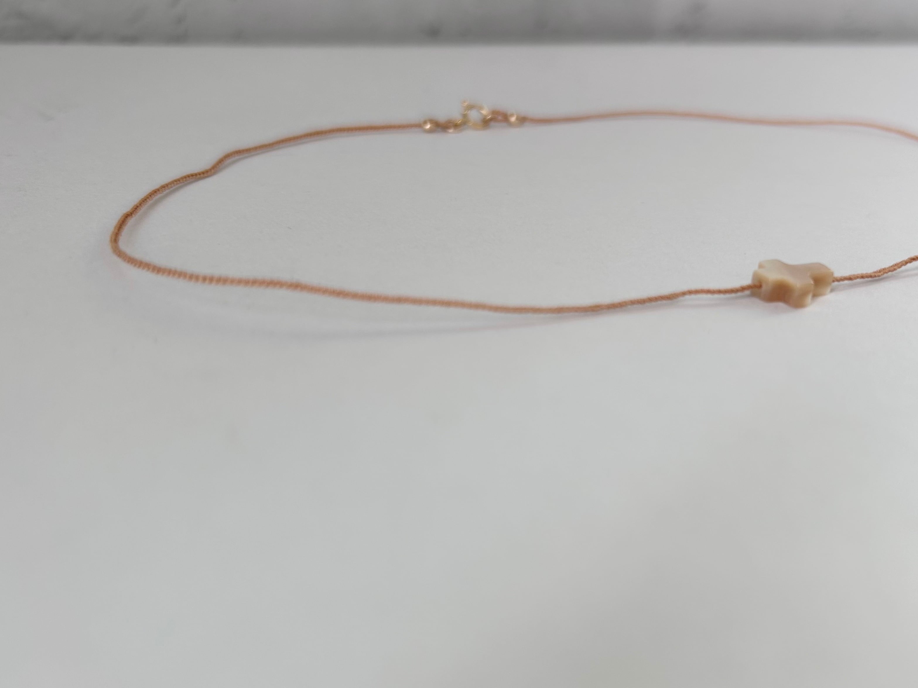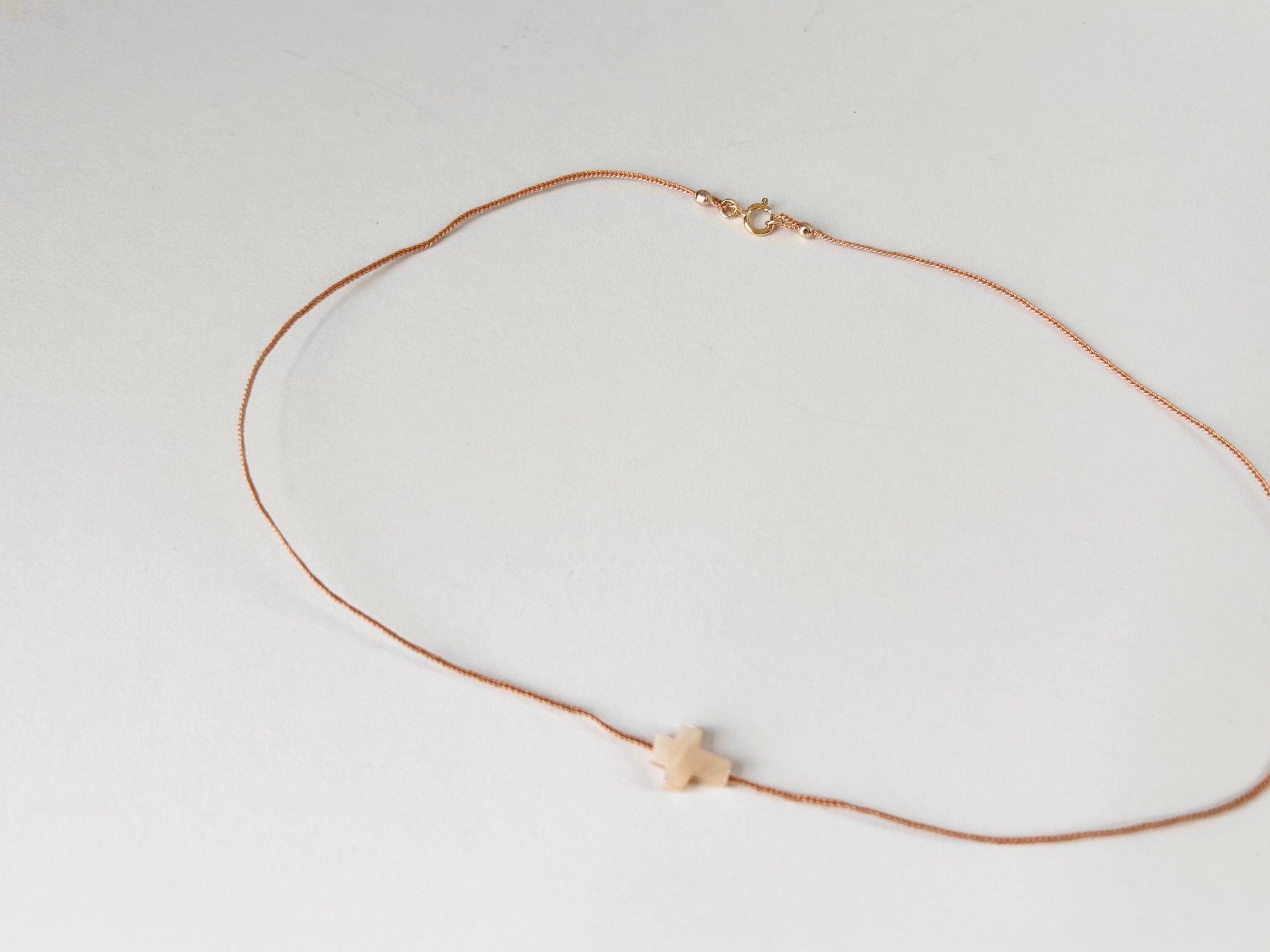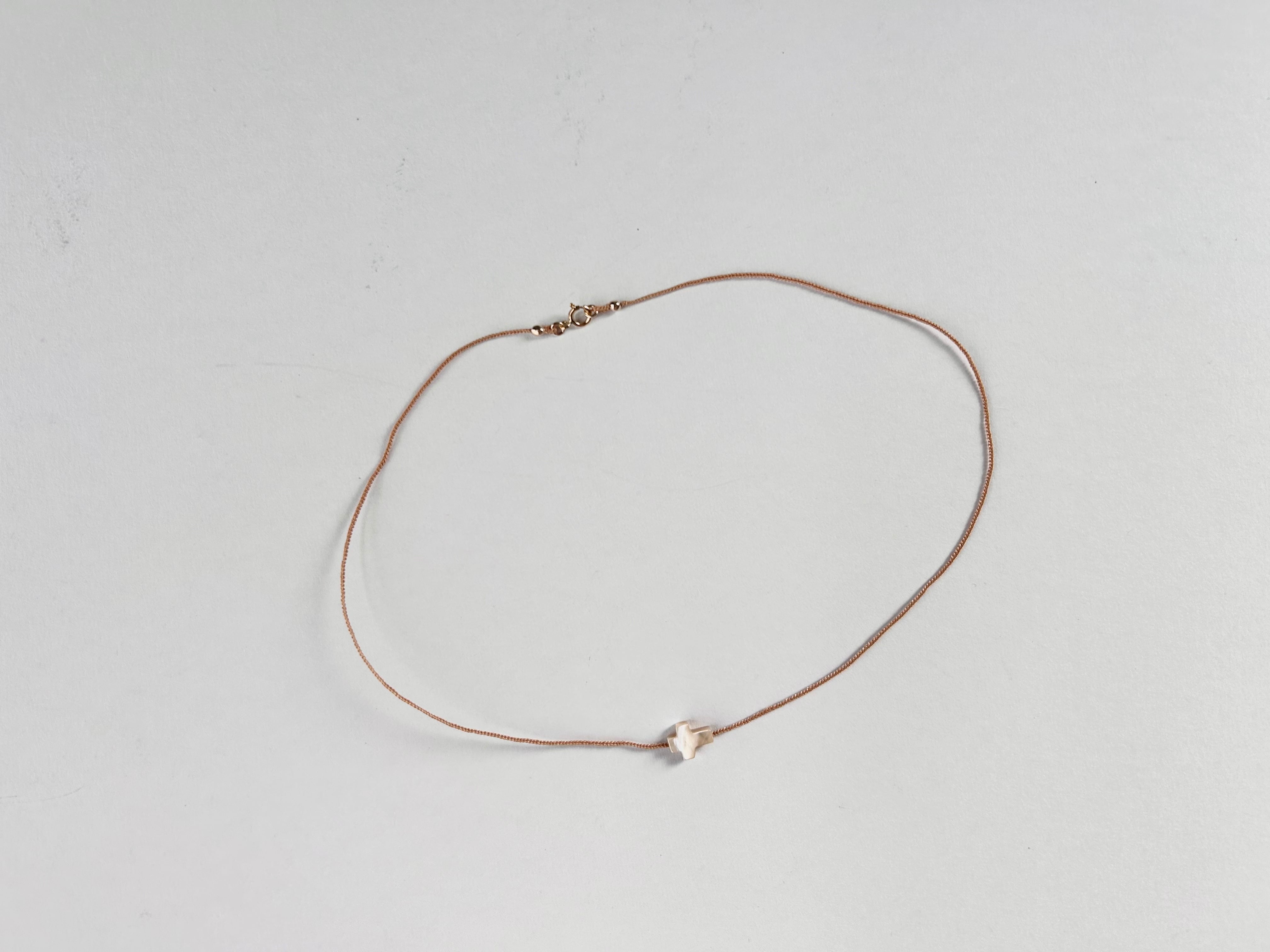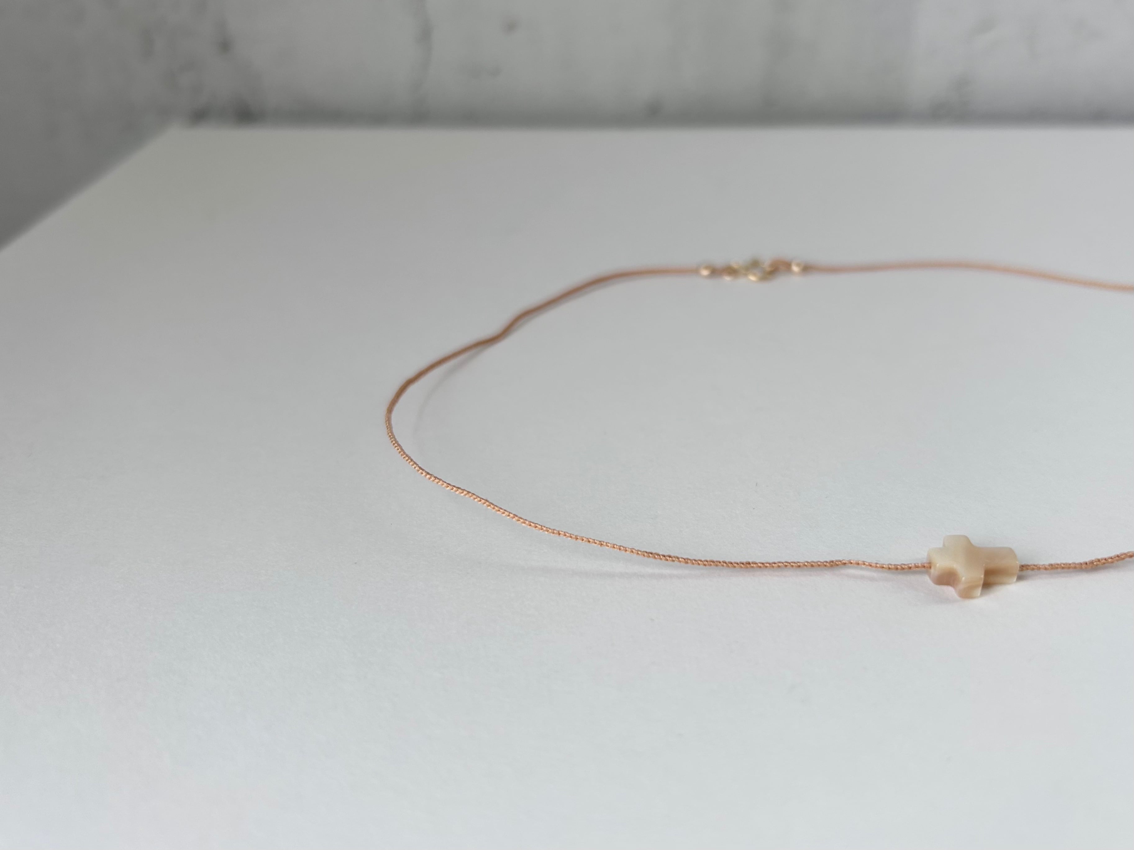KAMIORI KAORI . クロスのモチーフのマザーオブパールを通したネックレス。