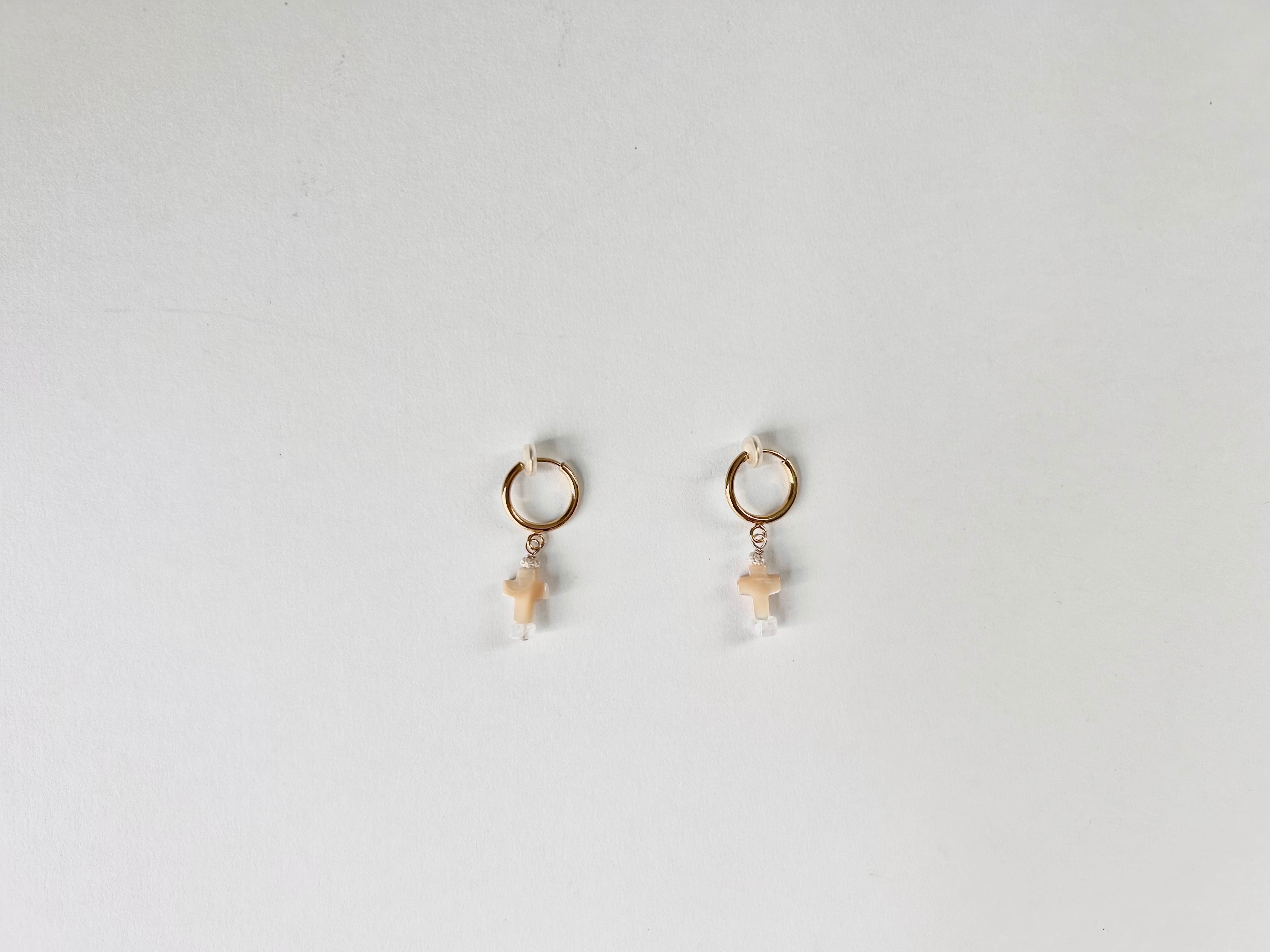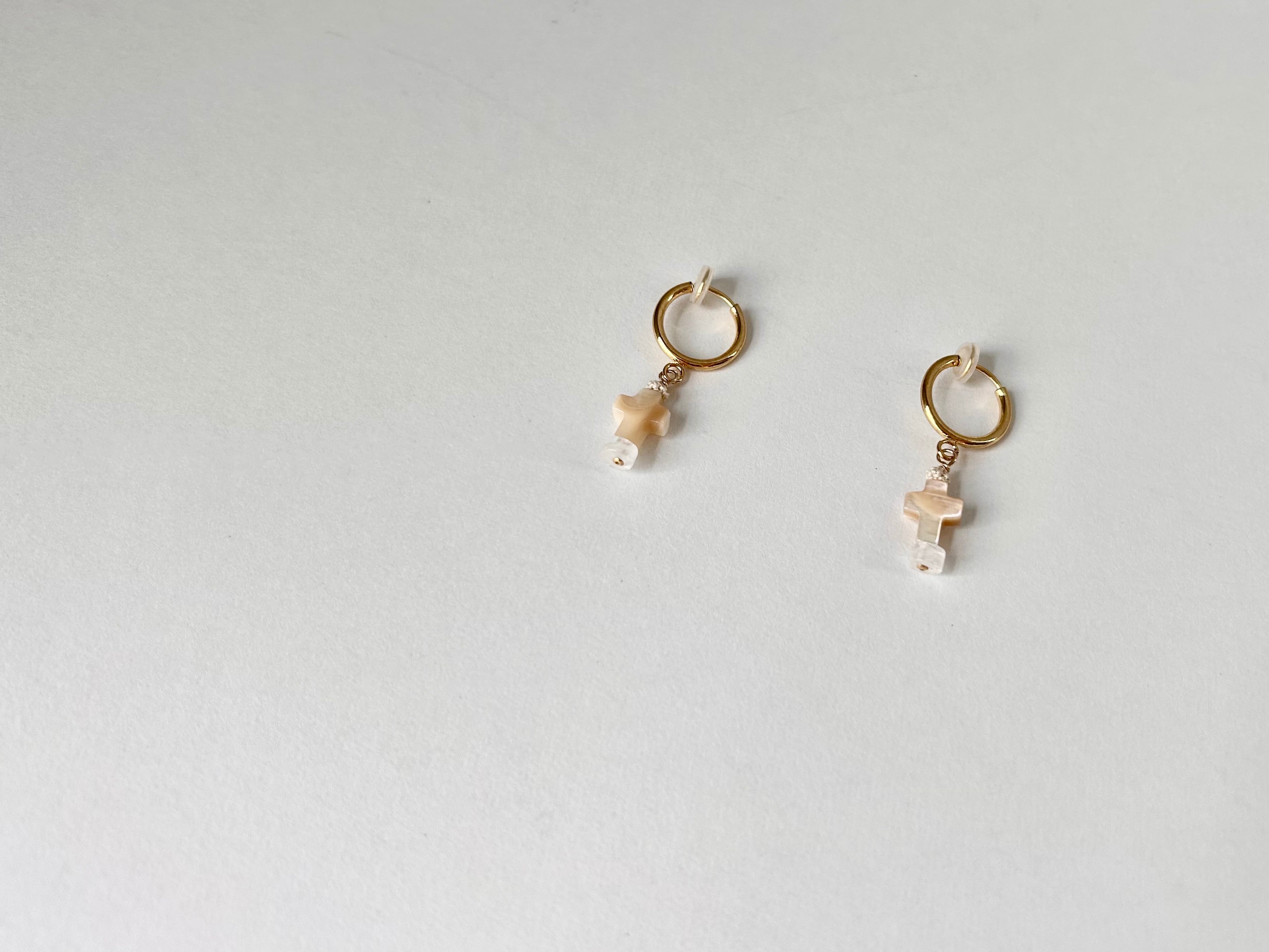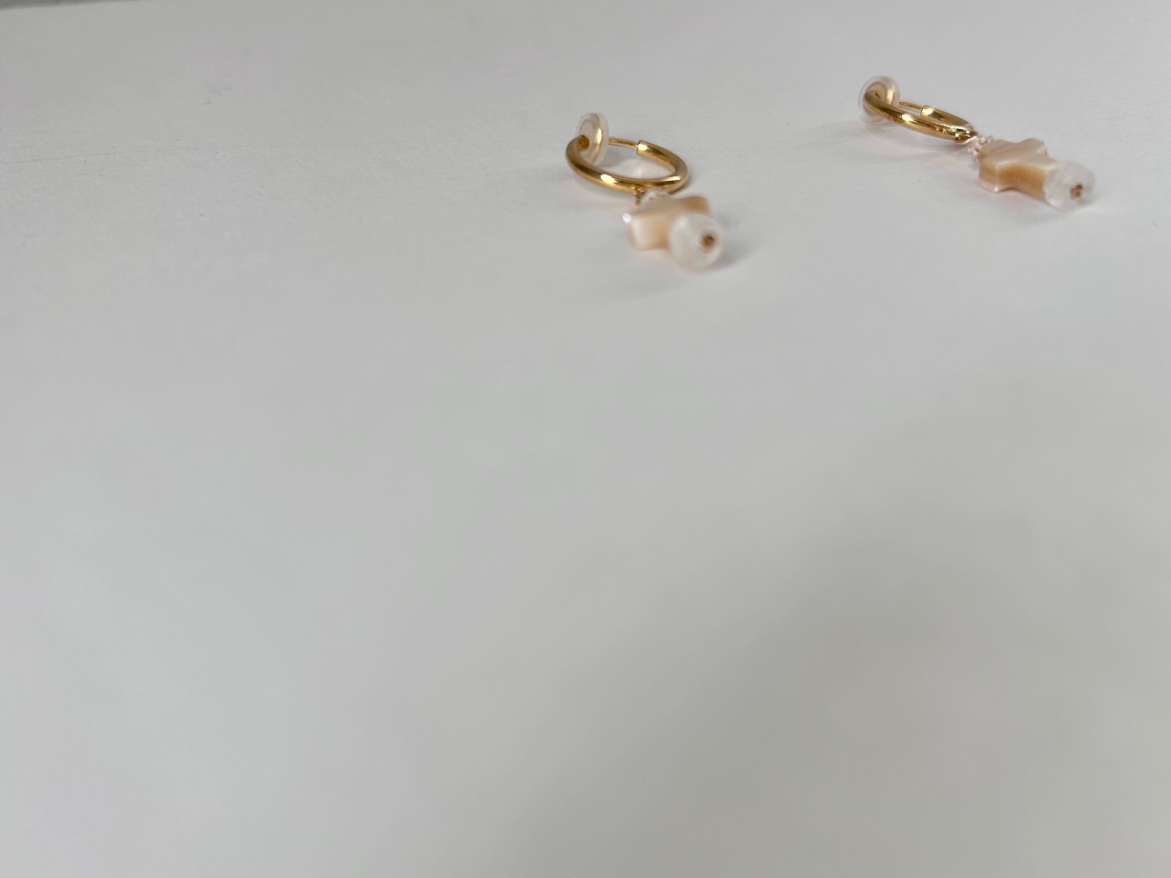 KAMIORI KAORI .クロスモチーフのマザーオブパールのイアリング。