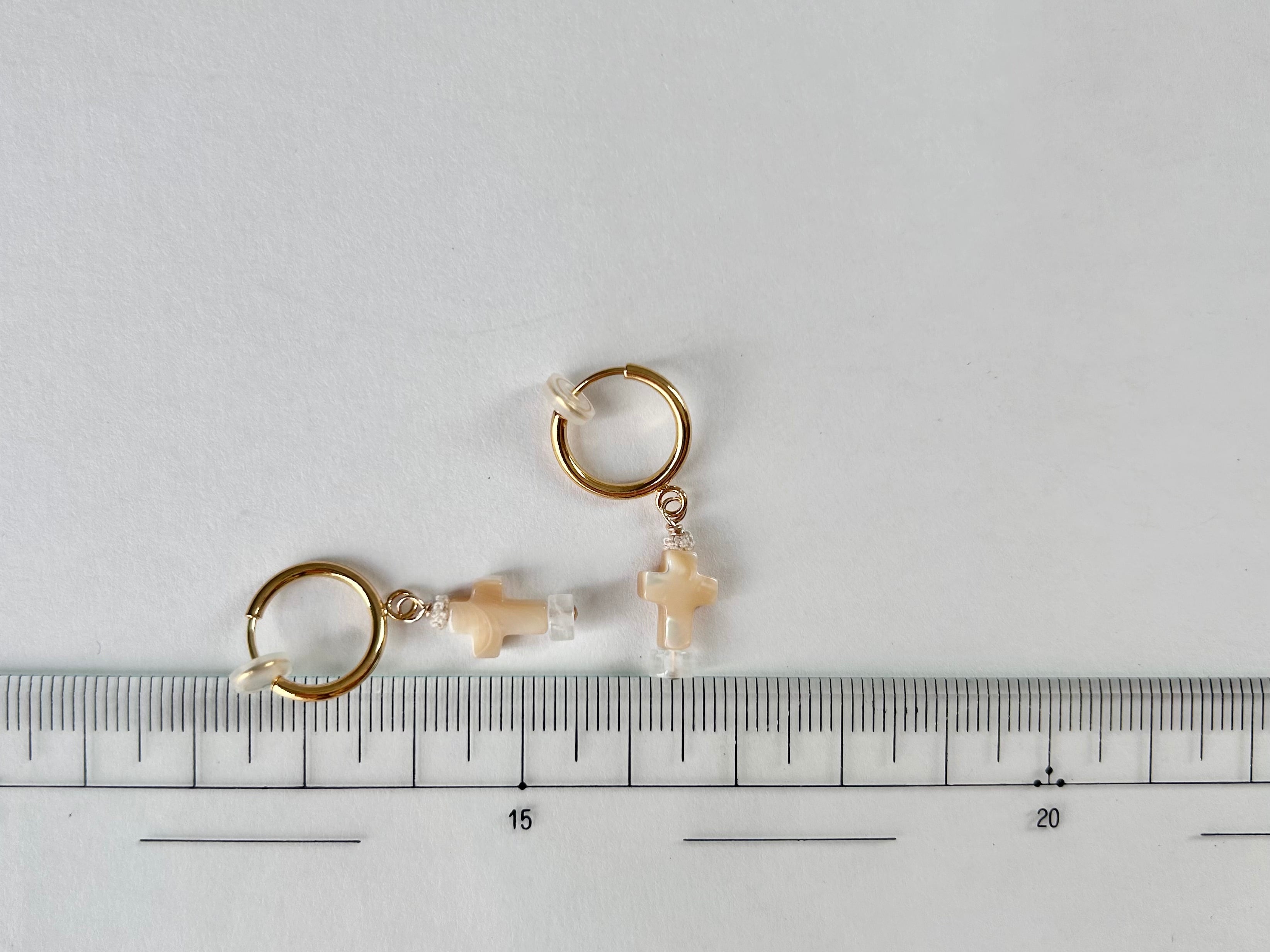 s i z e : ものさしの画像をご参考にしてください。着用写真はイアリング金具です。クロスモチーフのサイズのご参考にしてください。
