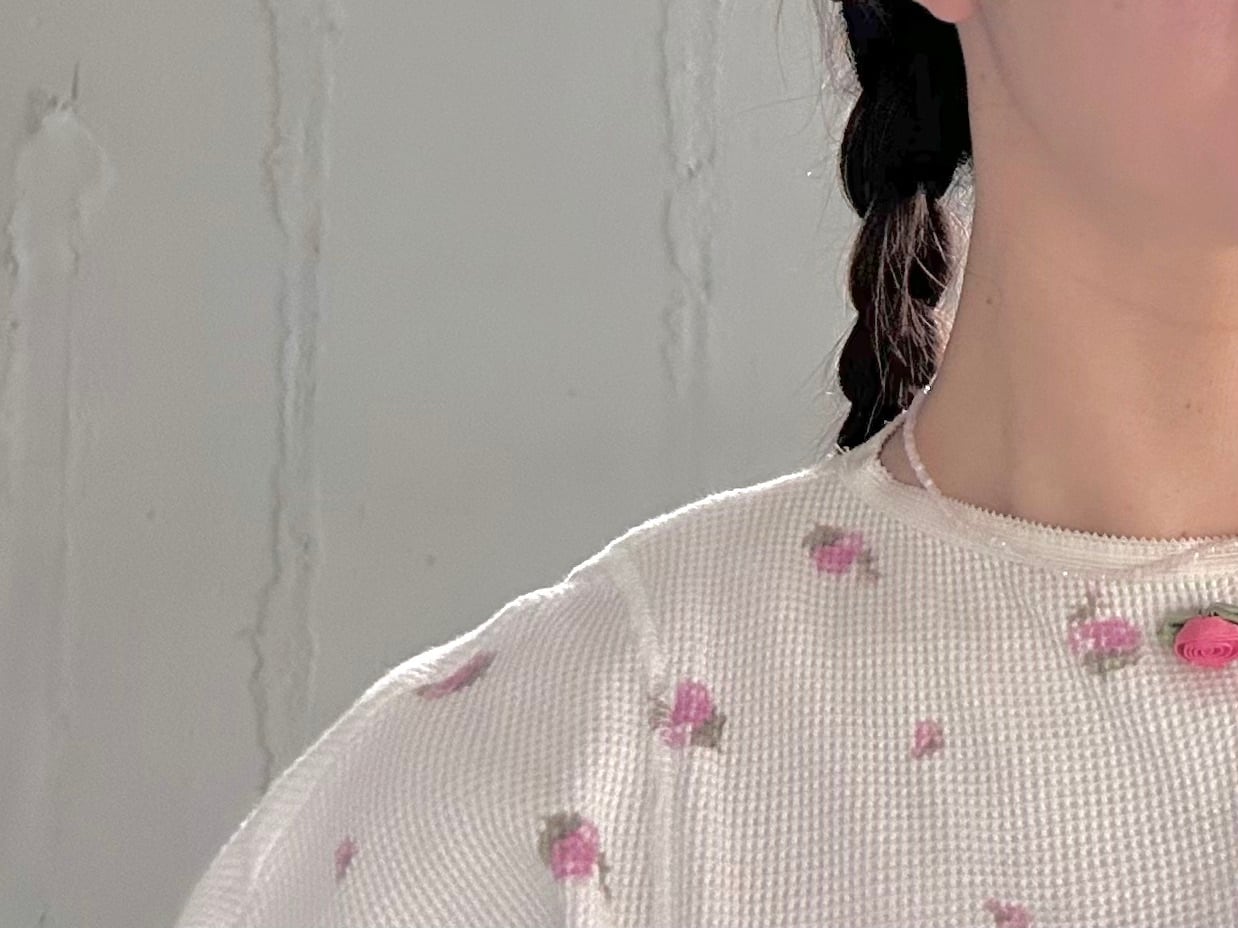 ピンク色の糸に通して仕上げたので、ほんのりと淡いピンク色。