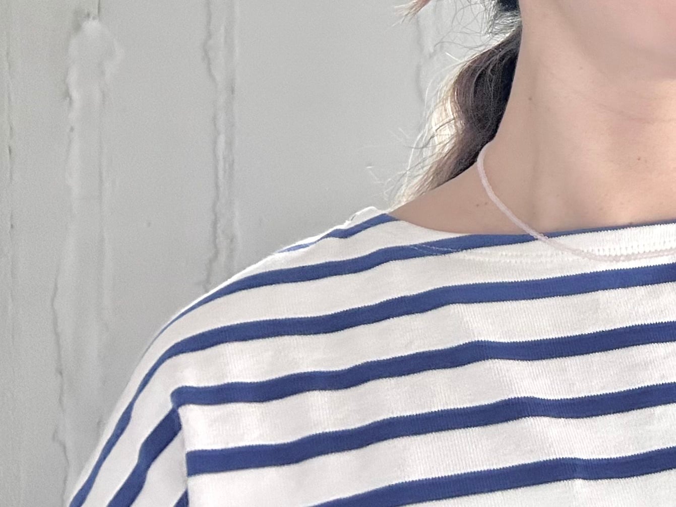 少し短めに鎖骨のあたりに沿うような長さに仕上げています。